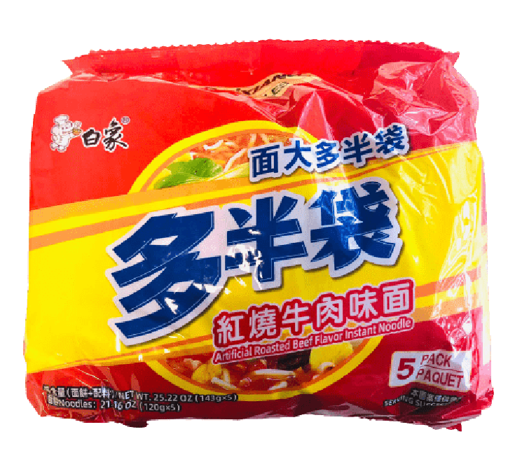 Baixiang Instant Noodles With Roasted Beef Flav. 5x143g