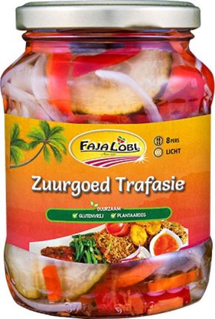 Faja Lobi Zuurgoed Trafasie is het populairst Surinaams zuurgoed voor bij o.a. Surinaamse gerechten, snacks, belegde broodjes.