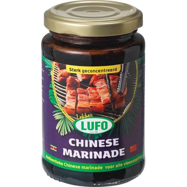 De Chinese marinade van Lufo is geschikt voor het inleggen van verschillende soorten vlees (kip, varken en rund) met een heerlijke lichtzoete smaak. Het ingelegde vlees kan vervolgens bereid worden op de barbecue, in de oven of gemakkelijk in de pan.