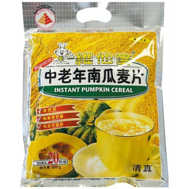 | Ingrediënten | Granen (VOLKORENMEEL, MOUTEXTRACT, Maïsmeel, Zout), Maltose (29%), Creamer [Glucosestroop, Plantaardige Olie (Cacaoboter), Emulgator (E469 MELK, E471, E481), Antioxidant (E340), Anatto, Antiklontermiddel (E551), Aroma], Pompoen, HAVERMOUT, Kleurstof (E170), Zoetstof (E955). Bewaaradvies: Op een droge en koele plaats bewaren, vermijd direct zonlicht. |