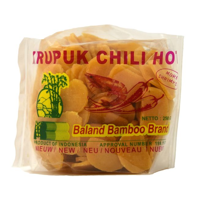 Baland Bamboo Krupuk Chili Heet 2x3cm (ongebakken) 250g