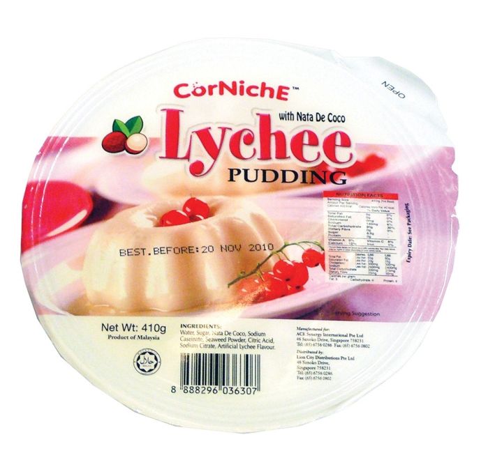 | Ingrediënten | Water, Suiker, Nata de Coco (2.6%), Niet-Zuivel Creamer [Glucose Siroop, MELKEIWIT, Stabilisator (E340ii, E452i), Emulgator (E471, E481), Zuurteregelaar (E332ii), Antiklontermiddel (E551)], Geleermiddel (E407), Zuurteregelaar (E330, E331iii), Lychee Smaak (0.1%), Conserveermiddel (E202). |
