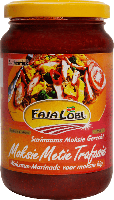 Faja Lobi Moksie Metie Trafasie is een vers bereide Surinaamse marinade om authentieke Surinaamse gerechten te bereiden.