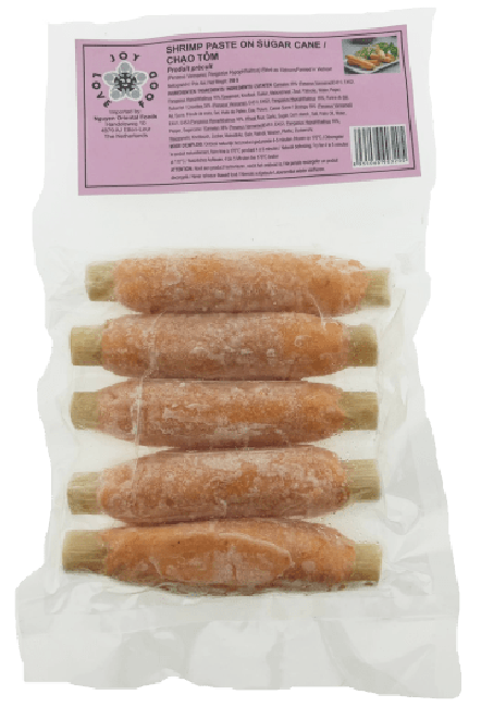 Garnalen (38%), E451i, E452i, Pangasius Hypophthalmus 16%, Tarwebloem, Knoflook, Suiker, Maïszetmeel, Zout, Palmolie, Water, Peper, Suikerriet. |