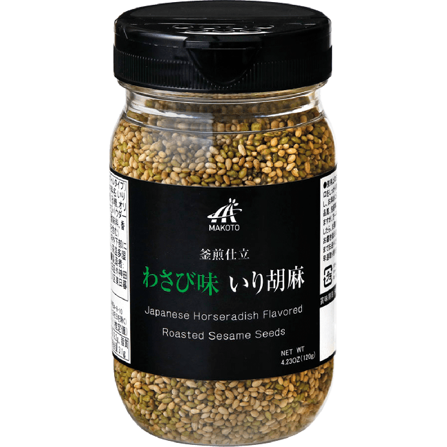 Wasabi is een scherpe Japanse mierikswortel die bekend staat om zijn sterke en onderscheidende smaak die een pittige toets aan gerechten toevoegt. In combinatie met geroosterde sesamzaadjes creëert de wasabi-smaak een gedurfde en pittige combinatie die zowel hartig als kruidig is. Makoto geroosterde sesamzaadjes Wasabi-smaak kan worden gebruikt als smaakmaker of garnering om een vleugje smaak toe te voegen aan een verscheidenheid aan gerechten, zoals sushi, salades, noedels en meer.