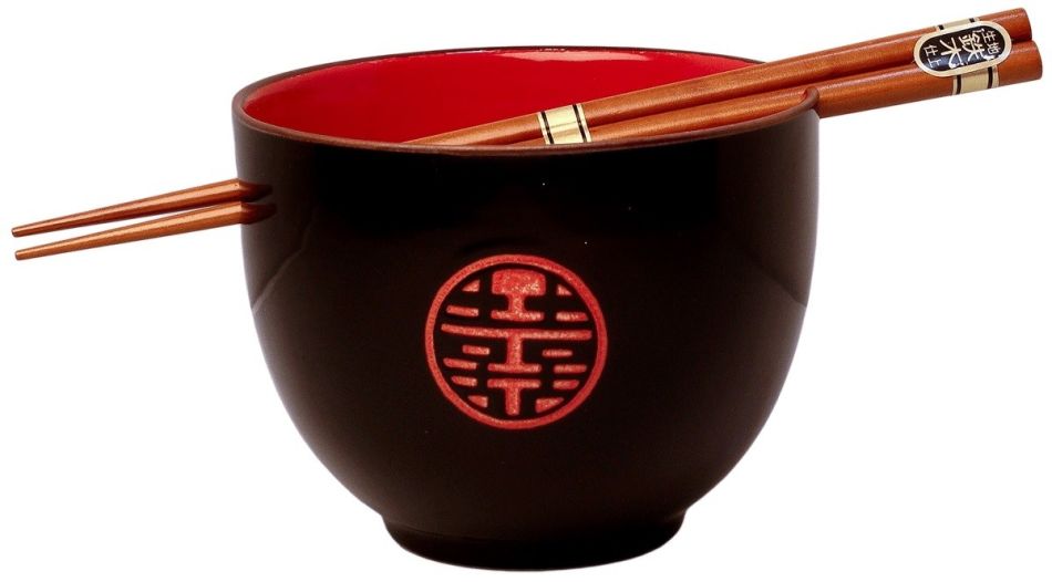 Soba Kom 5" Zwart Rood met Chinese Tekens (incl. Eetstokjes)