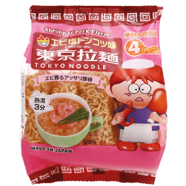 Tokyo Noedels Garnaal en Varkensvlees smaak zijn instantnoedels met een bouillon van garnalen en varkensvlees smaak. Dit product is geïnspireerd door de smaakvolle en gevarieerde straatvoedselscene in Tokyo, Japan. Het biedt een eenvoudige en snelle manier om van authentieke Japanse smaken te genieten.