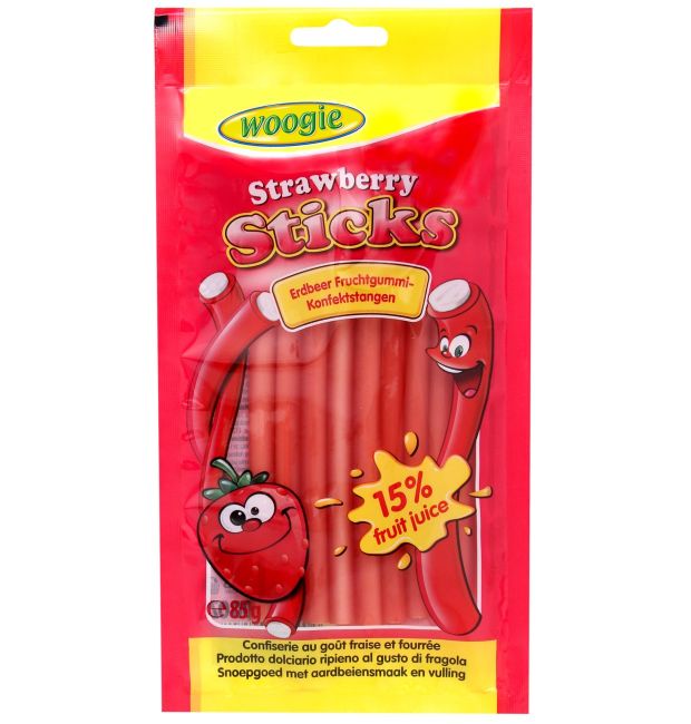 Woogie Sticks met Aardbeiensmaak en Vulling 85g